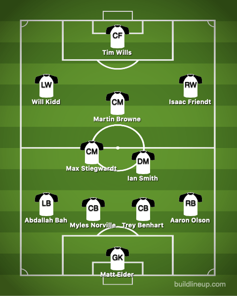 Subs (5): Branden McGarrity (ST), Whitney Browne (ST/AM), Nick Hutton (AM), Ben Wexler (M), Charlie Adams (FB)